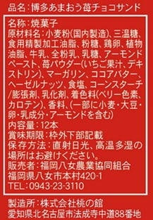 福岡県が誇る「博多あまおう」をたっぷりと使用した、この博多あまおう苺チョコサンド。サクサクした食感とフルーティーな香りが特徴で、一度食べたら忘れられない味わいを持っています。博多あまおうは、「あかい」「まるい」「おおきい」「うまい」の4つの特徴を持つことからその名が付けられ、8年の長い歳月をかけて研究開発された、福岡県内で育成された特別な苺です。